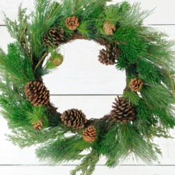 Pine Cones And Needles Artificial Christmas Wreath – 24-Inch, Unlit