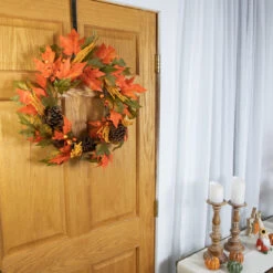 Maple Leaf And Pumpkins Artificial Autumn Wreath – 28-Inch, Unlit